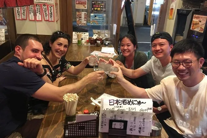 La tua serata include un tour guidato tra i bar di Namba con un esperto locale certificato di MagicalTrip, da 3 a 4 drink a scelta, una cena completa con almeno sei assaggi (come il kushikatsu) e foto scattate durante l’esperienza—tutto nei quartieri più vivaci di Osaka, con rientro in autonomia.