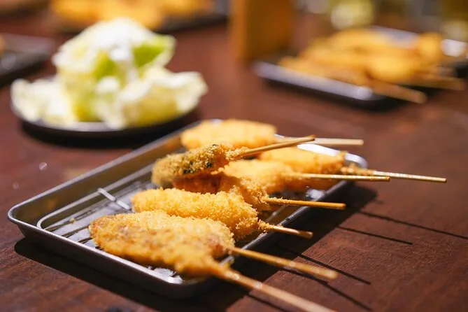 Vivi il quartiere vivace di Namba con una guida locale, saltando tra tre izakaya per sei assaggi, tra cui kushikatsu e takoyaki, con drink inclusi. Lungo il percorso scoprirai il tempio Hozenji e ascolterai storie dietro ogni angolo. Risate, sapori nuovi e ricordi che restano più a lungo dell’ultimo sorso.