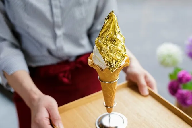 Visiterai il Giardino Kenrokuen, realizzerai dolci giapponesi o artigianato con un esperto locale, proverai l’arte della foglia d’oro e passeggerai nel quartiere Higashi Chaya gustando il gelato alla foglia d’oro.