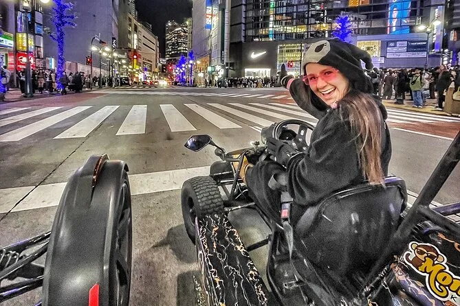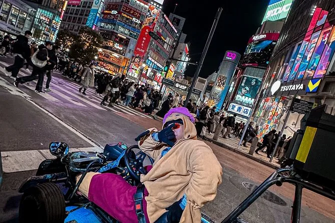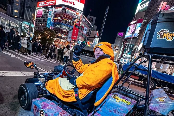 Ti sentirai parte del cuore pulsante di Tokyo sfrecciando in costume attraverso Shibuya Crossing, salutando i locali e ammirando da vicino i simboli della città dal tuo go-kart. Con una guida amichevole, soste per foto e quel mix di adrenalina e risate, sarà un’esperienza che ti resterà dentro molto dopo aver parcheggiato.