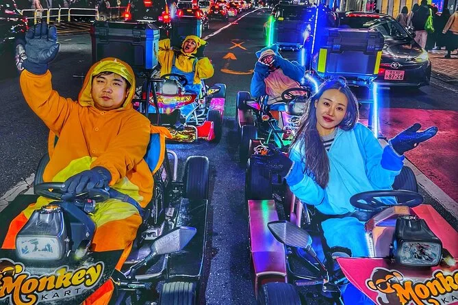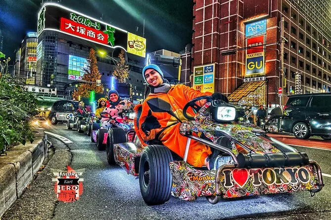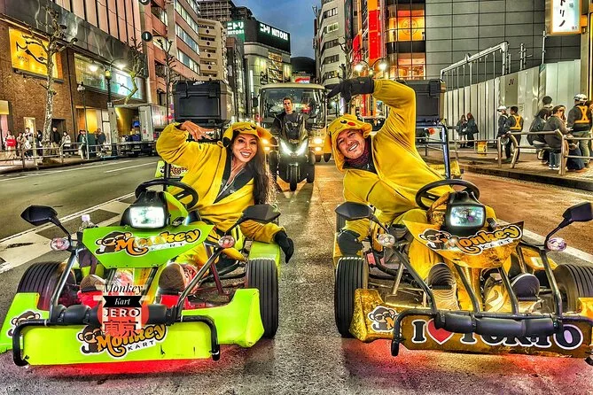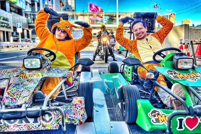 L’avventura di un’ora include un go kart con carburante, acqua in bottiglia per ogni guidatore, armadietti sicuri per i tuoi effetti personali, costumi divertenti da indossare durante il percorso, più foto digitali e stampate scattate dalla guida — così avrai la prova che hai davvero guidato per Tokyo vestito da Mario, Pikachu o chi vuoi tu.