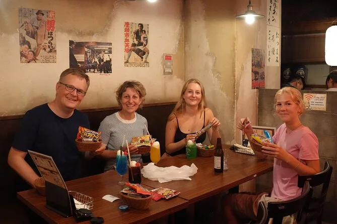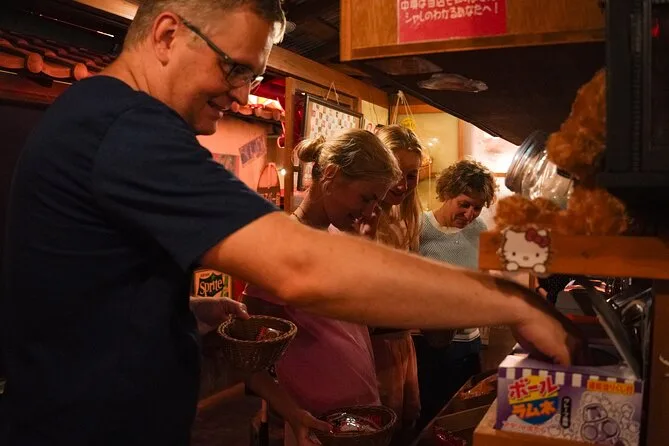 Preparerai il tuo okonomiyaki con l’aiuto di una guida locale, esplorerai i vicoli illuminati di Shinjuku assaggiando yakitori, riderai insieme in un’arcade giapponese e concluderai la serata con snack o sake—tutto immortalato in foto di famiglia spontanee da conservare.