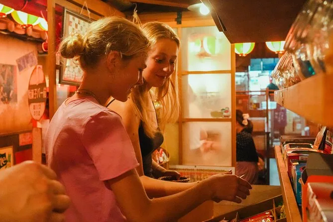 La tua serata include una guida privata nei vicoli di Shinjuku, la preparazione pratica di okonomiyaki e monjayaki (con cena e una bevanda a persona), tempo in un’arcade giapponese con foto purikura, tappe per assaggiare yakitori e snack o sake, più foto di famiglia modificate e illimitate scattate dalla guida prima del ritorno.