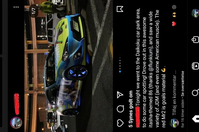 Attraversa Tokyo illuminata al neon a bordo di una supercar JDM personalizzata con una guida locale, attraversa Rainbow Bridge per viste mozzafiato sullo skyline e immergiti nell’atmosfera unica del raduno Daikoku. Aspettati profumi notturni, risate con la gente del posto e ricordi che resteranno a lungo dopo il ritorno in hotel.