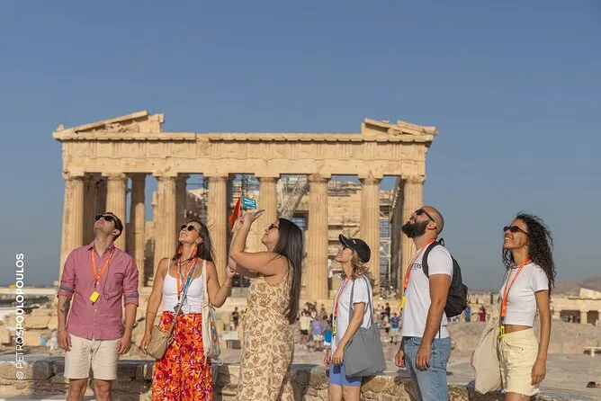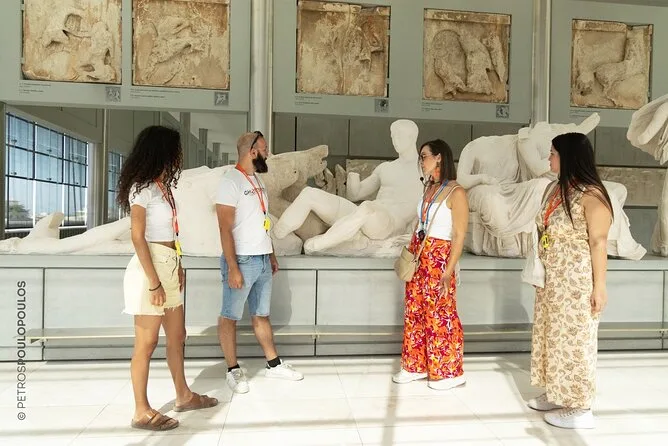 La giornata comprende visite guidate al Partenone, Erechtheion, Tempio di Atena Nike, Teatro di Dioniso e Odeon di Erode Attico sulla collina dell’Acropoli, più una passeggiata nel Museo dell’Acropoli con guida professionista in inglese. Riceverai cuffie per sentire bene la guida anche se c’è confusione intorno, una mappa di Atene e una rivista per esplorare in autonomia dopo il tour—e se scegli l’opzione, il servizio salta fila per l’ingresso (anche se potrebbero esserci comunque controlli di sicurezza). Non è previsto il pick-up in hotel; ci si incontra direttamente sul posto, pronti a camminare e ascoltare storie.