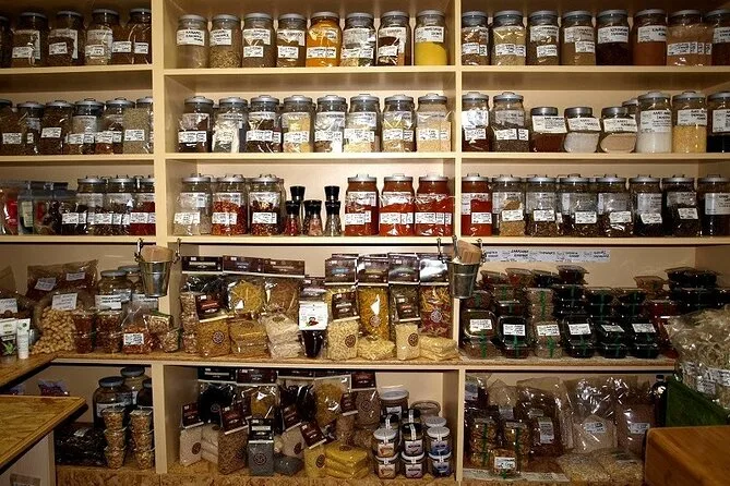 Entriamo in un negozio di erbe che profuma di timo selvatico e qualcosa di più pungente che non riesco a riconoscere. Il proprietario parla veloce, gesticolando mentre prepara sacchetti da farci annusare. A un certo punto qualcuno chiede dei coltelli — scopriamo che andremo accanto a vedere un anziano incidere a mano motivi sull’acciaio. Lì è più silenzioso, quasi meditativo, tranne per qualche colpo metallico quando controlla il filo della lama.