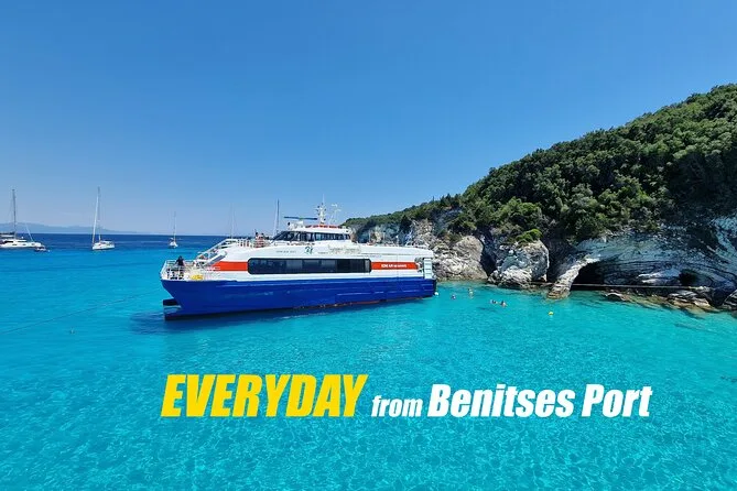 La tua giornata comprende una guida locale multilingue a bordo (con opzioni audio in alcune lingue), un giro in barca tra la Fortezza Vecchia di Corfù e l’area di Kanoni, tempo libero per esplorare o pranzare a Lakka su Paxos, ingresso in due Grotte Blu via barca, e soste per nuotare nelle splendide spiagge di Paxos e Antipaxos, prima del rientro al porto di Corfù in serata.