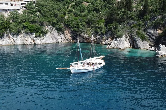 Salpa da Corfù città su una barca di legno d’epoca per una crociera di un’intera giornata con tre soste per nuotare in calette nascoste dell’Ionio raggiungibili solo via mare. Gusta un pranzo BBQ greco tradizionale con vino locale sul ponte e ascolta le storie della guida mentre passi ville famose e foreste. Un’esperienza autentica e rilassata, tra pelle salata, risate a pranzo e acque turchesi che resteranno nel cuore.