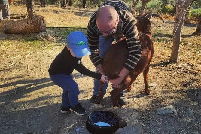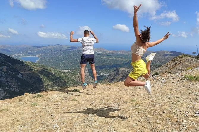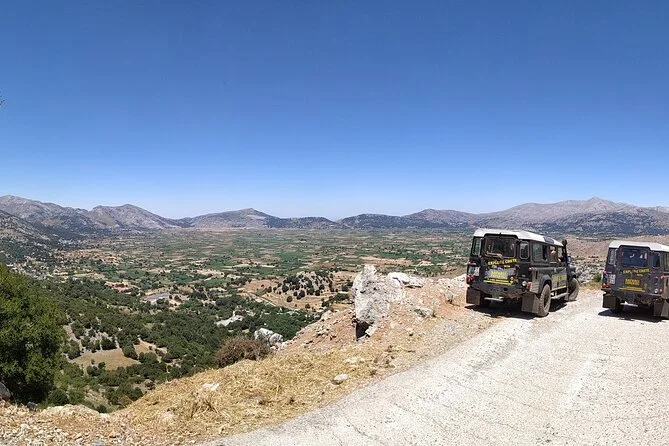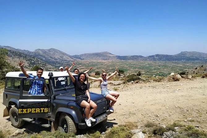 Il tuo giorno include pickup e ritorno in hotel con veicolo 4WD guidato da un esperto locale. Visiterai una fattoria tradizionale per assaggiare formaggi e dare da mangiare agli animali, esplorerai villaggi di montagna e mulini a vento, entrerai nella Grotta di Zeus (biglietto escluso), e pranzerai con vino in una taverna di famiglia prima di tornare in serata.