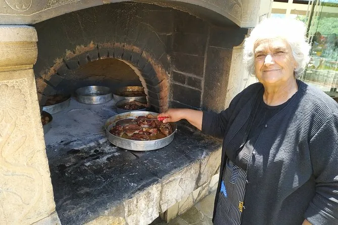 Il pranzo è stato rumoroso e disordinato nel modo migliore: pane cotto nel forno a legna, agnello arrosto, vino versato direttamente dalla brocca. La nonna di qualcuno ci salutava da dietro il bancone. All’ultima tappa a Krasi, ci siamo fermati sotto un platano più vecchio di molti stati — duemila anni o più. Si sentiva scorrere l’acqua da qualche parte, ma per lo più regnava il silenzio, rotto solo dalle risate del gruppo. Ancora penso a quel panorama su Sissi durante il ritorno; è difficile dimenticarlo.