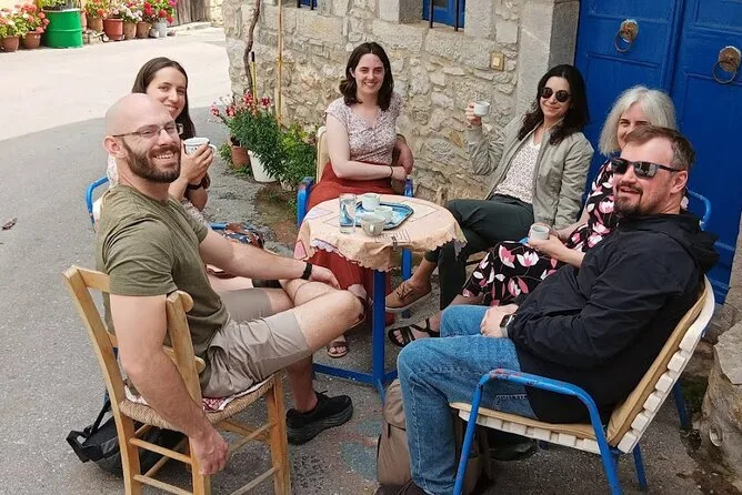 Visiterai il villaggio di Krasi (con il suo antico platano) e il villaggio di Mochos per un caffè con la gente del posto.