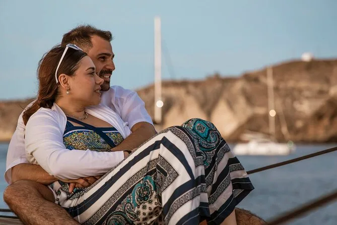 Vedere Oia dal basso mentre ci avvicinavamo al tramonto — è stato un colpo diverso da qualsiasi foto avessi mai visto. Le case sembravano illuminarsi contro le scogliere. Mi sono sorpreso a tremare un po’, anche se non faceva freddo; forse troppo sole o troppe emozioni tutte insieme. Nikos ci ha raccontato storie sui vulcani di Santorini mentre passavamo vicino a Nea Kameni, e per un attimo sembrava che il tempo si fosse fermato. Non siamo scesi a ogni fermata (a volte la barca resta ancorata in acque profonde), ma onestamente non mi è dispiaciuto. A volte basta solo essere lì.