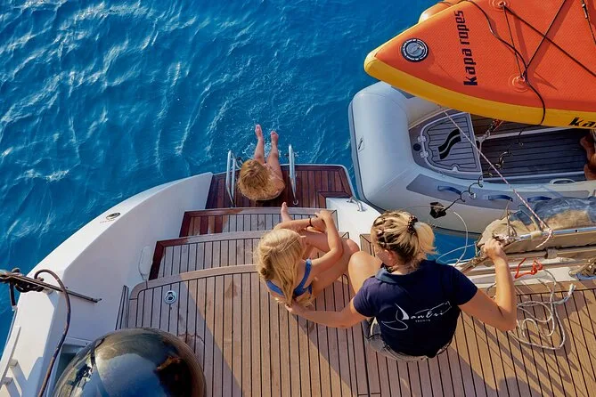 Il viaggio è stato così tranquillo che mi sono steso su uno di quei lettini a rete (non sono spaventosi come sembrano). Quando abbiamo gettato l’ancora vicino a Dia, tutti guardavano già con occhi curiosi lo scivolo gonfiabile. L’ho provato—ho urlato come un bambino—poi sono caduto in un’acqua così limpida che si vedevano i pesciolini argentati nuotare tra le dita dei piedi. Qualcuno è partito con il sea scooter; io ho preferito il paddleboard dopo aver rischiato di perdere gli occhiali da sole. C’è stato un momento in cui tutto è diventato silenzioso, solo qualche risata lontana e il dolce schiaffeggiare dell’acqua contro lo scafo—una pace che non mi aspettavo.