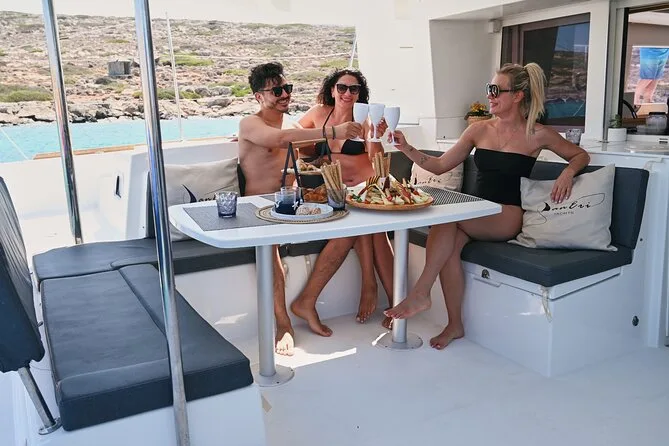 Mattina in catamarano a Dia con giochi d’acqua, pranzo cretese e vino