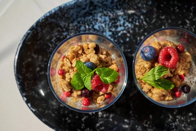 La mattina include la navigazione da Heraklion su un catamarano moderno con aree ombreggiate e lettini; drink di benvenuto come espresso o acqua detox; brunch leggero; tutta l’attrezzatura per sport acquatici come SUP, kayak, snorkeling e giochi gonfiabili; giubbotti di salvataggio; bevande illimitate tra cui birra e vino; e un pranzo cretese salutare studiato da un nutrizionista prima del rientro in porto nel pomeriggio.