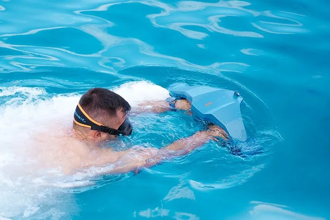 Puoi provare scivolo gonfiabile, sea scooter, paddleboard (SUP), kayak, snorkeling, pesca e giri sul tubo d’acqua.
