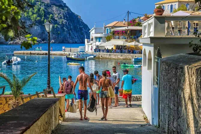 Scivolerai sulle acque luminose della Grotta di Melissani, passeggerai per le vie fiorite di Assos con una guida locale, assaggerai pesce fresco al porto di Fiscardo e ammirerai il blu di Myrtos Beach—tutto con comodo pickup in hotel e tante storie lungo il percorso. Aspettati risate, aria di mare e momenti da ricordare a lungo.