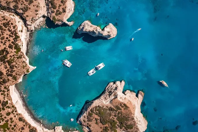 Il tour dura un’intera giornata con diverse soste per nuotare tra Milos e Poliegos.