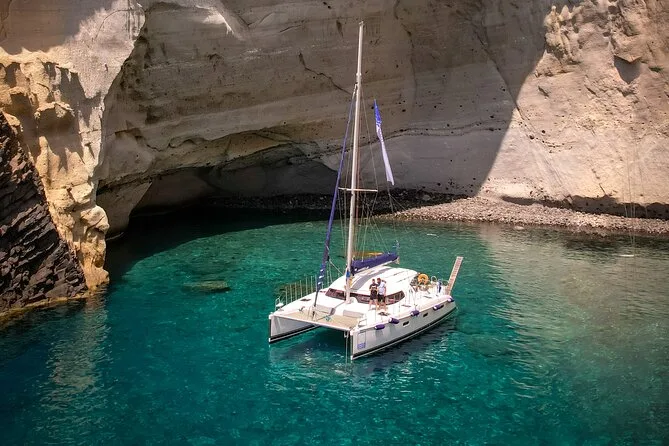 La giornata include la colazione mentre salpi dal porto di Milos, snack durante la crociera, pranzo a bordo con birra, vino locale o bevande analcoliche; l’attrezzatura per lo snorkeling è fornita per ogni tappa; tutte le tasse e i biglietti d’ingresso sono inclusi così puoi rilassarti tra un bagno e l’altro senza pensieri.