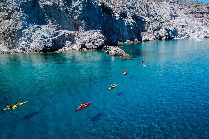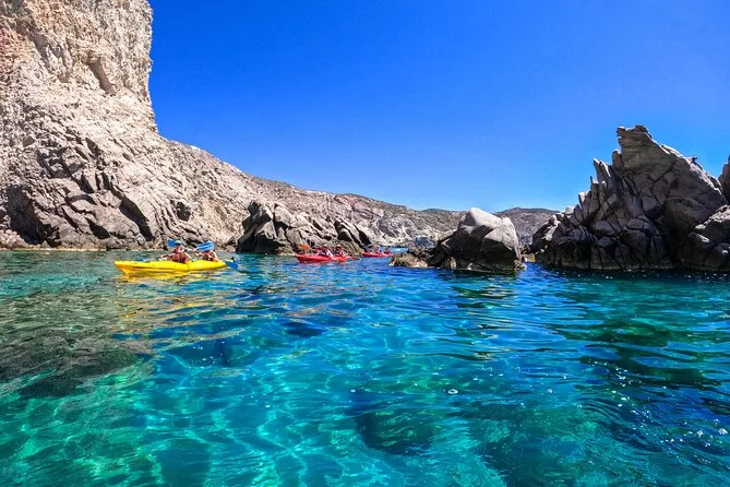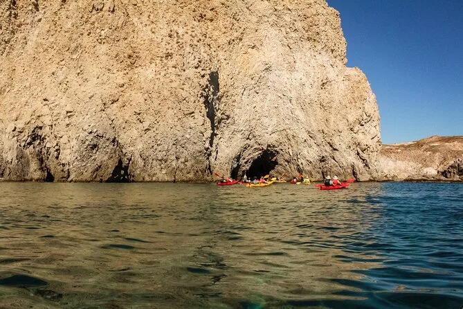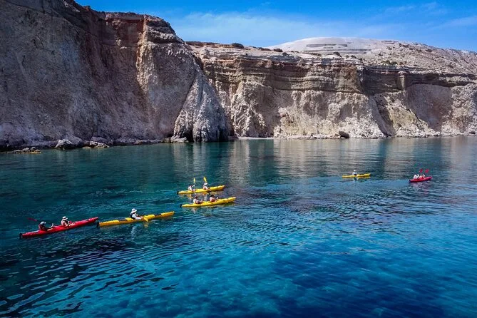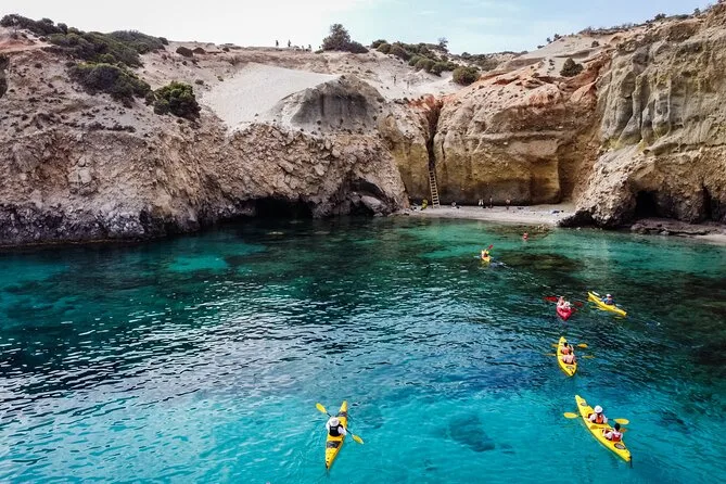 Partirai da Firopotamos Beach lungo le coste vulcaniche di Milos, esplorerai grotte marine in kayak e farai snorkeling alle sorgenti termali di Gerakas con una guida locale. Assapora snack fatti in casa direttamente sulle rocce e galleggia in baie cristalline. Capelli salati, pelle baciata dal sole e veri sapori greci—con tante risate lungo il percorso.