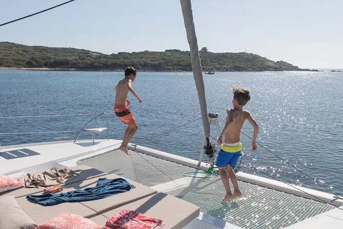 Il tuo giorno include transfer dall’hotel e ritorno (se prenotato in anticipo), navigazione tranquilla su un catamarano moderno con WiFi, soste per nuotare o fare snorkeling vicino a Rhenia o lungo la costa sud di Mykonos a seconda del meteo, uso di kayak e SUP quando possibile, acqua in bottiglia, bevande analcoliche, vino e birra con un pranzo fresco di tre portate preparato da uno chef a bordo—il tutto prima di rientrare a terra nel pomeriggio.