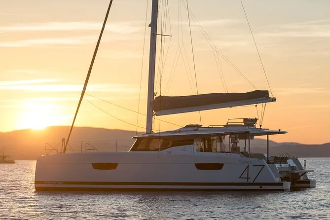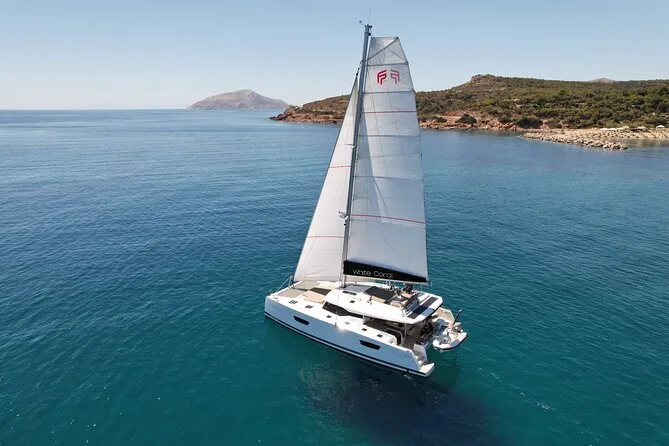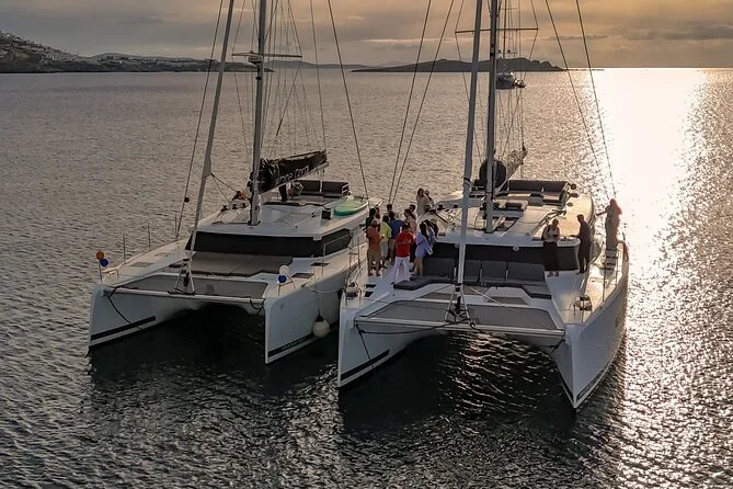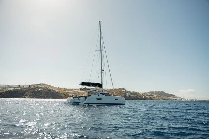 Parti da Mykonos con transfer dall’hotel incluso, rilassati su un catamarano spazioso e nuovo, nuota o fai paddleboard vicino a Rhenia o lungo la costa sud (a seconda del meteo), poi gusta un pranzo greco fresco con vino locale mentre passi accanto all’antica Delo. Risate, aria di mare e quella voglia di non tornare subito a terra.