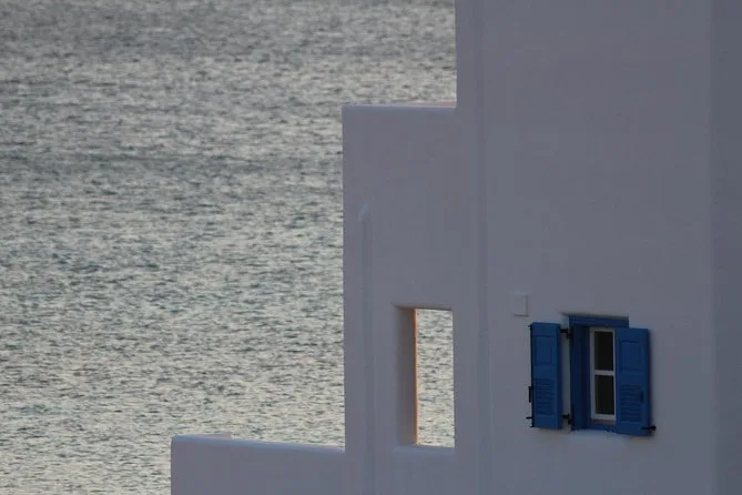 Appena saliti siamo subito entrati nel dedalo di stradine di Mykonos Town—la nostra guida, Eleni, ci ha condotto tra vicoli bianchi dove panni stesi ondeggiavano sopra le nostre teste e gatti si facevano largo tra le nostre gambe. L’aria aveva un leggero sentore di caffè e alghe (una combinazione strana, ma qui funziona alla perfezione). Ho provato a pronunciare “Paraportiani” riferendomi alla chiesa e Eleni ha sorriso—mi ha detto che i locali la chiamano semplicemente “la vecchietta.” Quella chiesa sembra davvero scolpita dal vento. Abbiamo incontrato un pescatore che aggiustava le reti, ci ha salutati con un cenno mentre canticchiava piano. La città sembrava ancora mezza addormentata.
