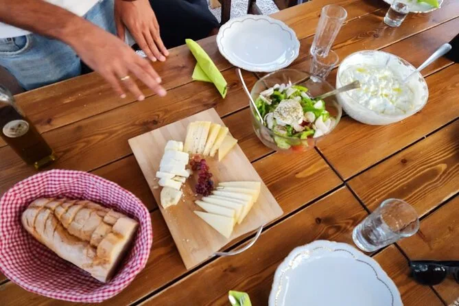 Sì, durante il pasto si degustano sia il vino locale che diversi tipi di formaggio di Naxos.