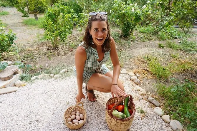 La durata esatta non è specificata ma comprende tempo per visitare gli animali, raccogliere prodotti, cucinare insieme e pranzare.