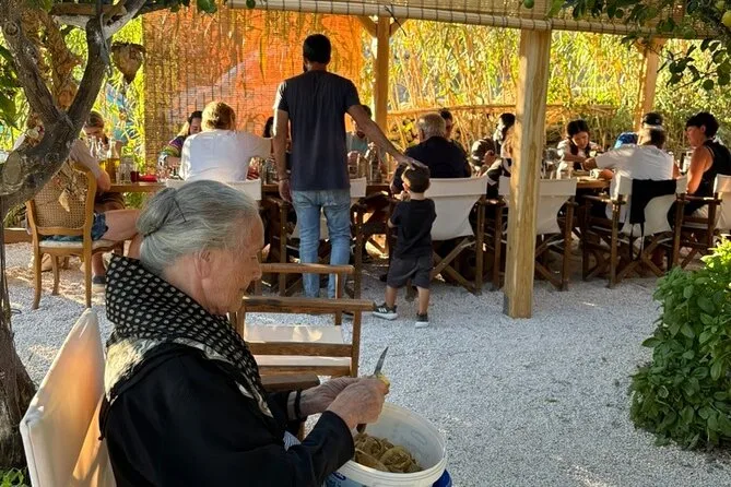 Raccoglierai uova con la gente del posto vicino a Melanes, assaggerai frutta direttamente dagli alberi, cucinerai ricette tradizionali di Naxos su un fuoco a legna guidato da una nonna, e condividerai il pranzo sotto le viti con vino di casa. Risate, cibo genuino, nuovi amici e momenti da raccontare.