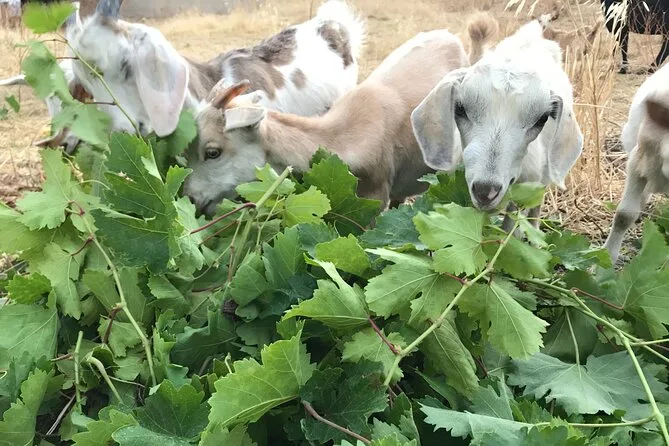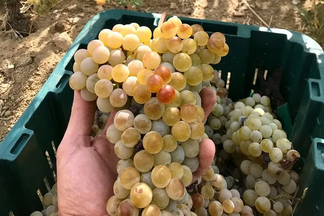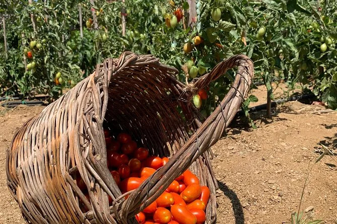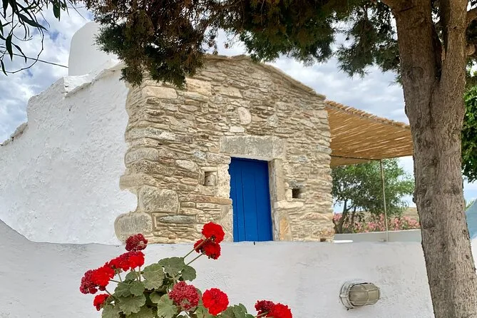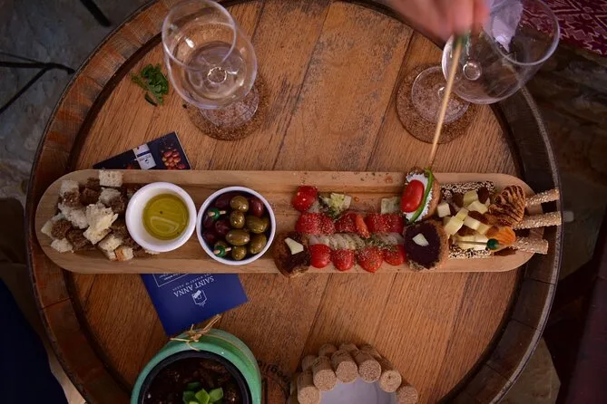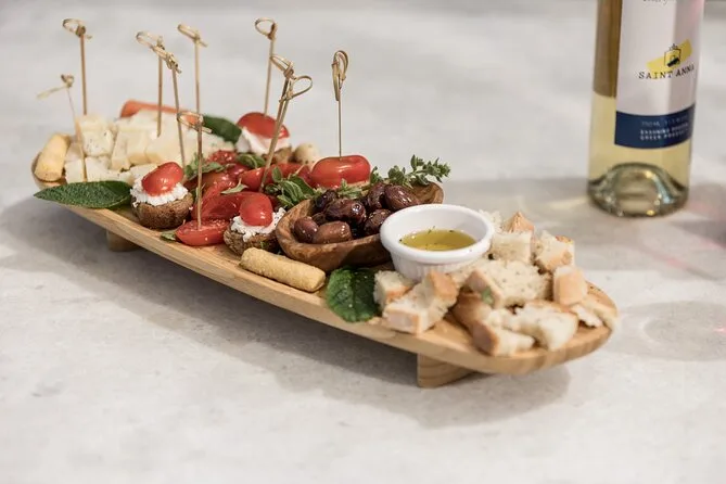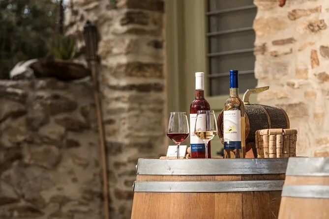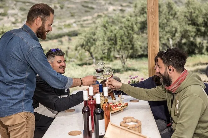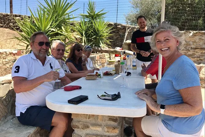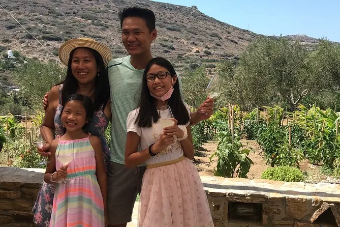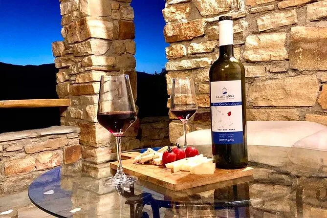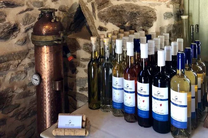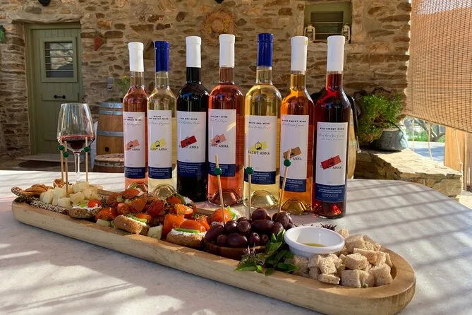 La tua giornata comprende una passeggiata guidata tra gli uliveti e i vigneti di Saint Anna a Naxos, l’ingresso alla storica cappella del IX secolo, un’introduzione ai metodi tradizionali di vinificazione con esposizione di attrezzi antichi e macchinari moderni, più una ricca degustazione di 6–9 vini abbinati a verdure fresche coltivate nella loro fattoria—pensa a pomodori riscaldati dal sole e formaggi locali—tutto condiviso attorno a un tavolo con i tuoi ospiti prima di lasciarti cullare dalla lunga serata isolana.