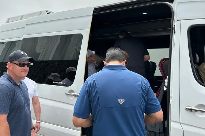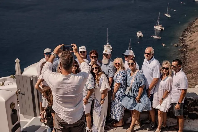 Il tuo giorno include pick-up e drop-off direttamente in cima alla stazione della funivia di Santorini (niente stress per perdersi), trasferimenti in minibus climatizzato tra i villaggi (fidati, lo apprezzerai), commenti della guida locale ad ogni tappa, diverse pause per foto ai luoghi iconici come le cupole blu e i panorami sulla caldera, più tempo libero a Oia per shopping o uno snack veloce prima di tornare alla nave.