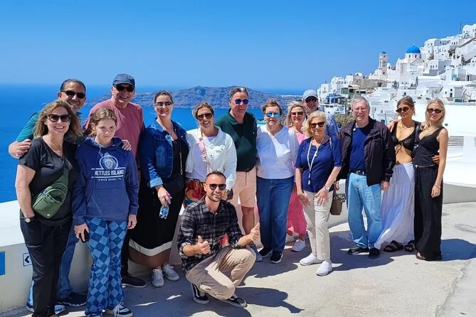 Vivrai i contrasti di Santorini — panorami ventosi dal monte Prophet Elias, un caffè tranquillo a Megalochori, le cupole blu di Fira e i vicoli di Oia illuminati dalla luce morbida dell’isola. Con pick-up in hotel e guida locale che pensa a tutto (anche al caffè forte), potrai goderti ogni momento con calma.