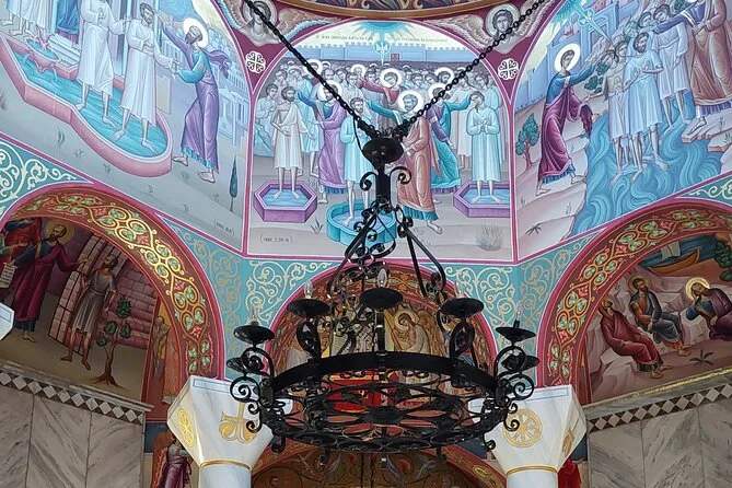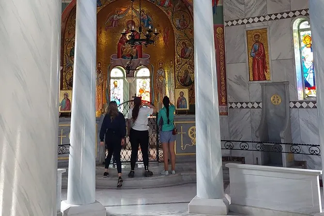 A pochi passi c’è un luogo più tranquillo ma altrettanto intenso—il Battistero di Santa Lidia. Scorre un piccolo ruscello accanto; si dice che qui Paolo battezzò Lidia, la prima donna cristiana d’Europa. Ancora oggi potresti assistere a un battesimo all’interno (noi sì—una famiglia di Kavala era lì). La chiesa è moderna ma costruita per onorare quel momento antico. La nostra guida ha letto un passo dal racconto di Luca sulla visita di Paolo nel 49 o 50 d.C.—è stato emozionante stare proprio lì.