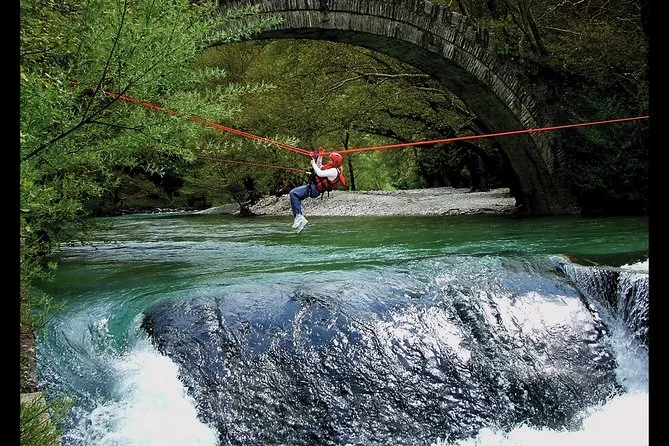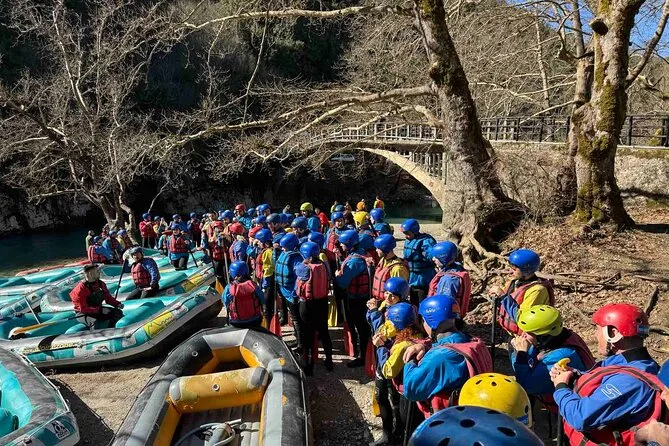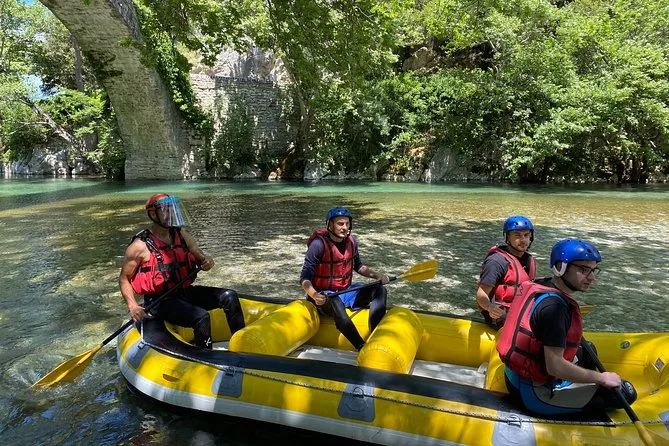 La giornata include il pick-up in hotel o l’incontro alla base di Alpine Zones a Zagori, tutta l’attrezzatura specializzata per il rafting (muta e scarpe in neoprene, casco, giubbotto salvagente), la guida di esperti locali durante la discesa sul fiume Voidomatis—dal ponte di Papigo fino oltre il ponte di Kleidonia—più acqua e dolci tradizionali baklava al termine, sotto l’antico ponte di pietra, prima di tornare asciutti (o quasi).