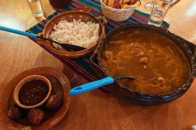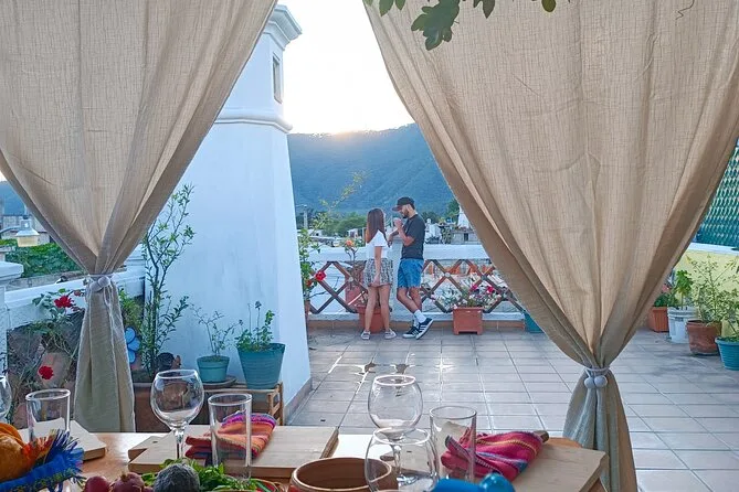 La tua giornata include la degustazione di frutti esotici nel vivace mercato di Antigua con una guida locale, seguita dal trasporto privato a una cucina in terrazza dove preparerai insieme cinque piatti tradizionali guatemaltechi. Le ricette sono condivise, insieme a due bicchieri di vino a persona e bevande naturali come limonata o tè all’ibisco; il pranzo sarà tutto ciò che avrai cucinato, prima del rientro vicino all’iconico Arco di Antigua.