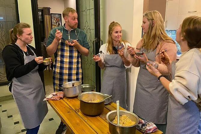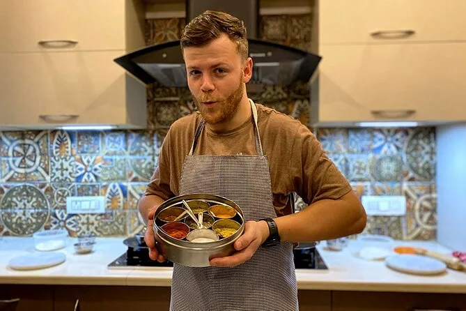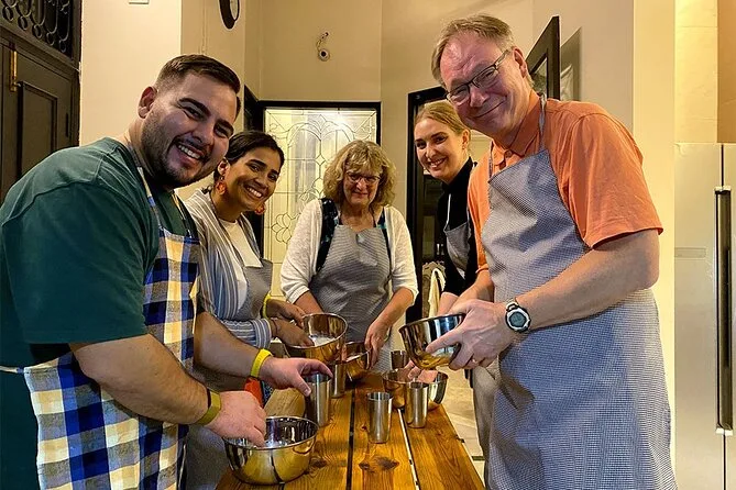 La tua giornata include masala chai fatto in casa all’arrivo, tutti gli ingredienti per preparare un pasto indiano completo con guida pratica in una cucina familiare di Delhi, acqua in bottiglia durante tutta la sessione, più pranzo o cena condivisi a tavola prima di andare via con nuove ricette e ricordi.