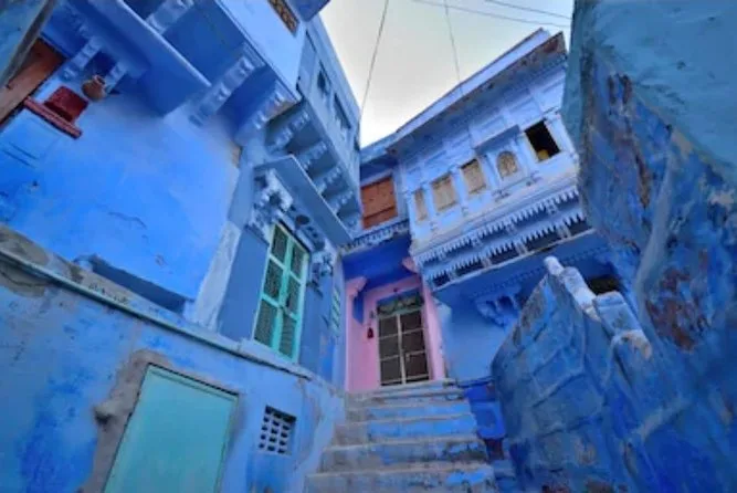 «Vuoi vedere il vero blu?» ci ha sorriso la guida, facendoci segno di seguirlo in una viuzza stretta mentre i negozi erano ancora chiusi. La città si stava appena svegliando: poco lontano un venditore di chai faceva tintinnare le sue tazze di latta, e l’aria fresca accarezzava la pelle. Ci siamo persi tra vicoli tortuosi, dove ogni muro sembrava dipinto di una sfumatura diversa di blu, alcune sbiadite e scrostate, altre appena ritoccate dai primi abitanti in movimento. Mi fermavo spesso a scattare foto mentre il sole faceva capolino dai tetti, catturando donne che spazzavano i gradini o bambini che inseguivano cani randagi.