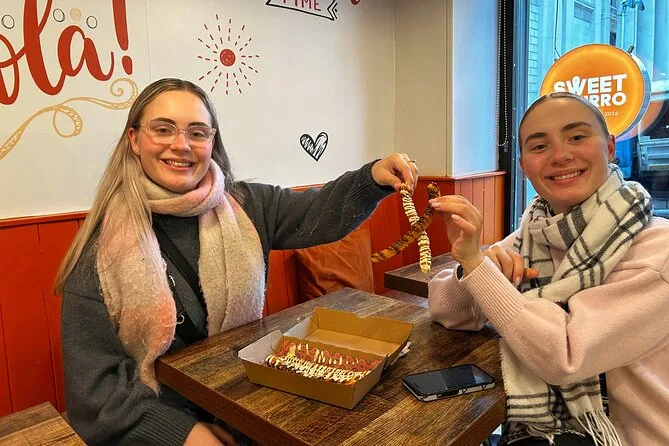 Il tuo giorno include passeggiate guidate nel centro di Dublino con soste per assaggiare donut freschi in quattro negozi locali—including churros—with tutti gli assaggi inclusi, terminando vicino a Westmoreland Street.