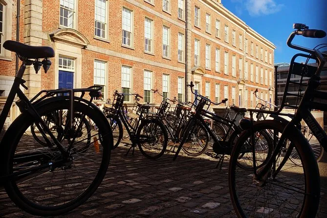Il tuo giorno include l’uso di una bici o ebike, casco e giubbotto riflettente per la sicurezza—tutto fornito prima di partire con la guida locale per le strade storiche del centro di Dublino.