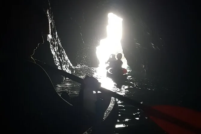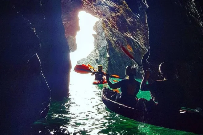 Cian è cresciuto qui vicino — ci ha indicato una torre in rovina nascosta nel verde sopra gli scogli e ci ha raccontato degli antichi contrabbandieri che usavano queste grotte secoli fa. Ho cercato di immaginare di sgattaiolare tra quelle fessure buie alla luce di una candela. Pagaiare dentro la grotta marina più grande è stato un’esperienza unica; il rumore della pagaia che batteva sulle pareti di pietra bagnata risuonava e nell’aria c’era un odore profondo e terroso che non saprei descrivere — un mix di sale e vecchi segreti. A un certo punto siamo rimasti tutti in silenzio, tranne per una risata nervosa che rimbalzava nel buio.