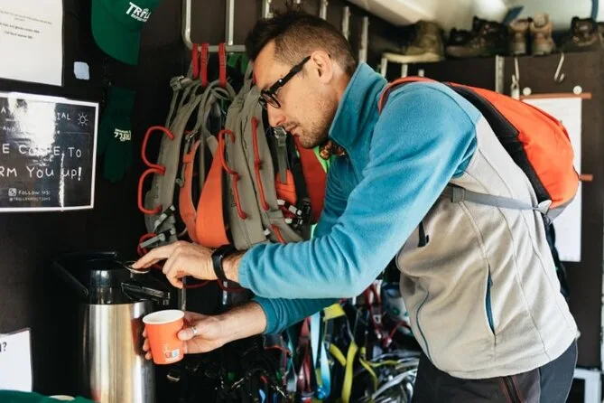 L’esperienza include tutta l’attrezzatura essenziale per il trekking sul ghiacciaio—ramponi, casco, imbrago e piccozza—oltre alla guida di un esperto locale certificato in gruppi piccoli di massimo 12 persone.