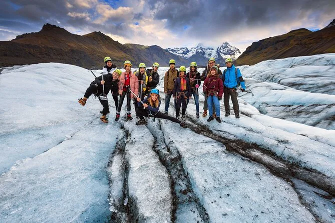 Cammina sul ghiacciaio Sólheimajökull con un piccolo gruppo e una guida certificata che ti fa sentire al sicuro e ti racconta storie vere. Senti il ghiaccio antico scricchiolare sotto gli scarponi, scopri segreti del ghiacciaio che non troverai online e goditi panorami blu-grigio che restano nel cuore. Attrezzatura completa inclusa, porta solo la voglia di avventura.