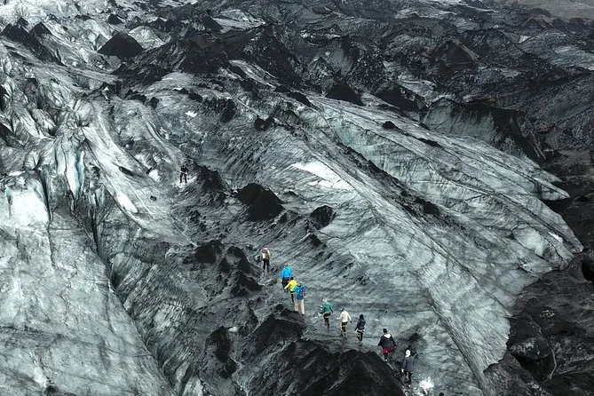 A metà percorso ci siamo fermati e Einar ha spiegato che Sólheimajökull fa parte di Mýrdalsjökull — l’ha disegnato sulla neve con la piccozza, uno spettacolo quasi ipnotico. Qualcuno ha chiesto dei vulcani (dopotutto siamo in Islanda), e lui ha sorriso dicendo che Katla è proprio sotto di noi ma “non preoccupatevi, sta dormendo.” Insomma, non è una gita qualunque da Reykjavík o altrove. Alla fine avevo le gambe stanche, ma in modo piacevole, e un brivido nel sapere che avevamo attraversato insieme qualcosa di così antico — anche se per poco non sono caduto due volte mentre mettevo i ramponi.