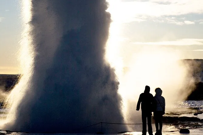 Gullfoss è rumorosa—davvero rumorosa—e più bagnata di quanto pensassi. La nebbia d’acqua mi ha appannato gli occhiali, così ho smesso di pulirli dopo un po’. C’è un momento in cui ti trovi proprio sul bordo (tranquilli, c’è una ringhiera) e tutto ciò che senti è l’acqua che batte sulle rocce. Qualcuno vicino a me ha detto che si sentiva un leggero odore di minerali e neve che si scioglie. Dopo siamo andati a Geysir; Strokkur è esploso proprio mentre armeggiavo con la macchina fotografica (ovviamente), quindi ho catturato più le facce sorprese della gente che il getto d’acqua. Mi ha fatto ridere davvero.