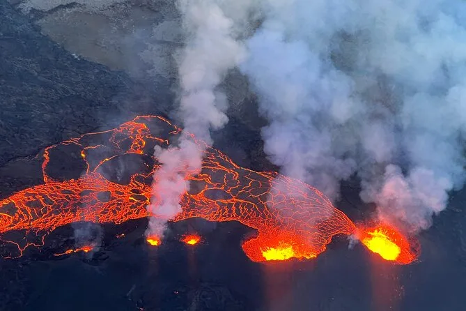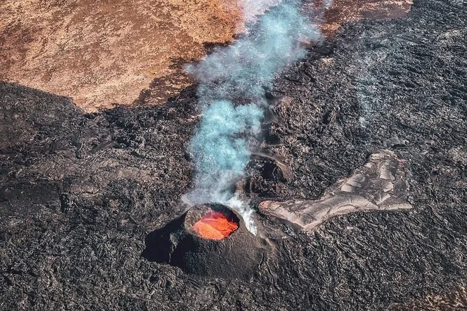 Vedrai campi di lava appena formati, crateri vulcanici, paesaggi sismici modellati dalle eruzioni recenti e viste aeree di Reykjavík.