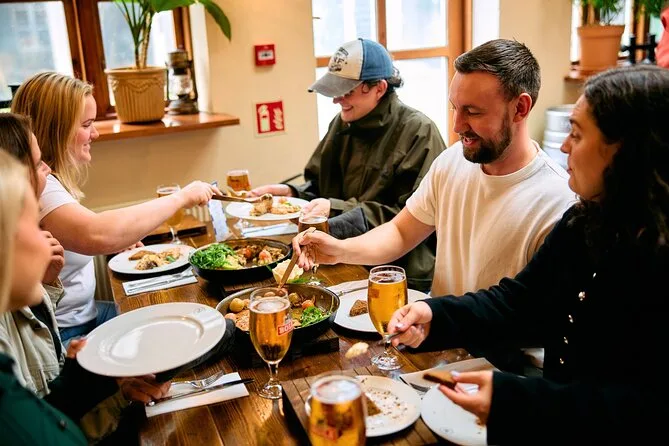 La tua giornata include passeggiate guidate nel centro di Reykjavik con soste in 4-6 locali per assaggi — fette di agnello islandese, gelato fatto in casa con ricette di famiglia, piatti di pesce fresco o hot dog — e tante storie raccontate dalla guida locale. Se hai allergie o richieste particolari, basta avvisare in anticipo per adattare il menu.