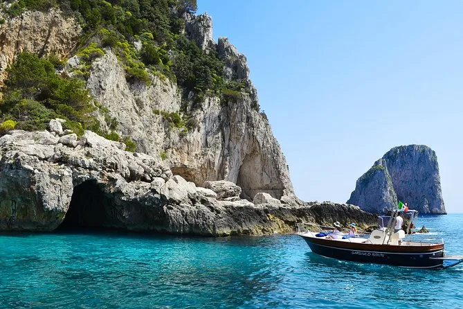 Lascia alle spalle la folla di Capri con un tour privato in barca, guidato dal tuo skipper personale. Passa tra grotte marine, attraversa l’arco di pietra dei Faraglioni e immergiti nelle grotte luminose come la Grotta Azzurra (biglietto extra). Nuota in acque cristalline o rilassati con una bibita fresca mentre esplori gli angoli più selvaggi dell’isola: ogni curva riserva una sorpresa.