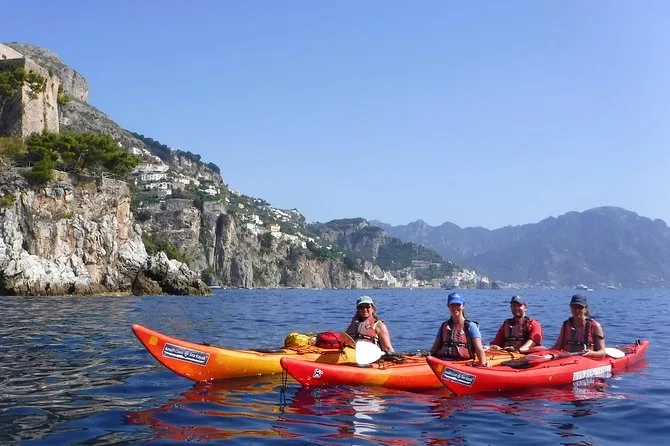 Scivolerai in kayak lungo la costa frastagliata di Amalfi con una guida locale, entrerai in grotte dai colori minerali, ti fermerai in spiagge raggiungibili solo via mare per nuotare o fare snorkeling e ascolterai storie su torri antiche e dolci inventati dalle suore. Aspettati sale sulle labbra e panorami indimenticabili.