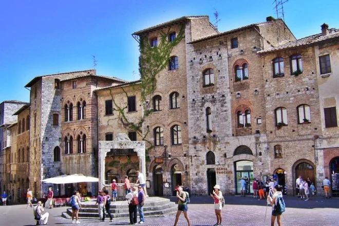 Il tuo giorno include trasporto andata e ritorno da Firenze con minivan Mercedes di lusso con WiFi gratuito, guida in inglese per il tour a piedi di Siena con assaggio a sorpresa, tempo libero a San Gimignano (con possibilità di visitare luoghi come la Basilica di Santa Maria Assunta) e infine una cena toscana con degustazione di vini in una cantina boutique, prima del rientro in serata.